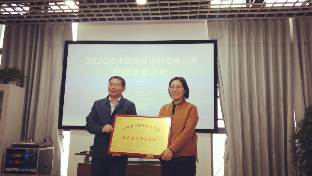10月17日上午,学院党委委员、副院长周兴元,江苏现代农业(茶叶)产业技术体系首席专家王润贤受邀参加2020年中国扶贫日盱眙雨山茶创新发展论坛,为“雨山茶”的产品定位、品牌打造、产业发展、人才培养出谋划策,举行了茶产业“体系共建示范基地”授牌仪式。