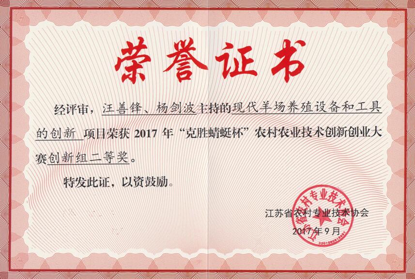 9月18日,由省农村专业技术协会组织的2017年“克胜蜻蜓杯”农村农业技术创新创业大赛在苏州农业职业技术学院举行。我院8个项目入围决赛阶段,其中,汪善锋老师主持的“现代羊场养殖设备和工具的创新”项目获得创新组二等奖,刘庆新、孙智远、王煜恒老师的项目获得优秀奖,学院获得“优秀组织奖”。